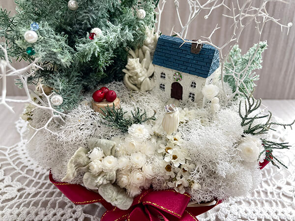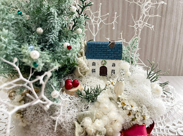 クリスマスツリーのある風景をプリザーブドフラワーで作ってみました!